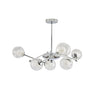 This chandelier features a combination of chromed mirrors and clear glass shades with a polished chrome finish Its elegant and quirky design adds sophistication and a playful touch to any room, making it the perfect centerpiece for contemporary spaces.