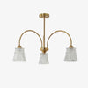 This chandelier features layered crystal ruffle glass shades on a gold-finished frame, blending practicality with refined elegance. When lit, the cascading structure diffuses light beautifully, creating a soft romantic ambiance ideal for dining rooms with a touch of mid-century charm.