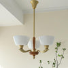 This chandelier features a graceful flared shade and sculpted brass arms, blending vintage charm with elegant symmetry. Inspired by traditional hurricane lamps, it brings warmth and sophistication to dining spaces, lounges, or entryways.