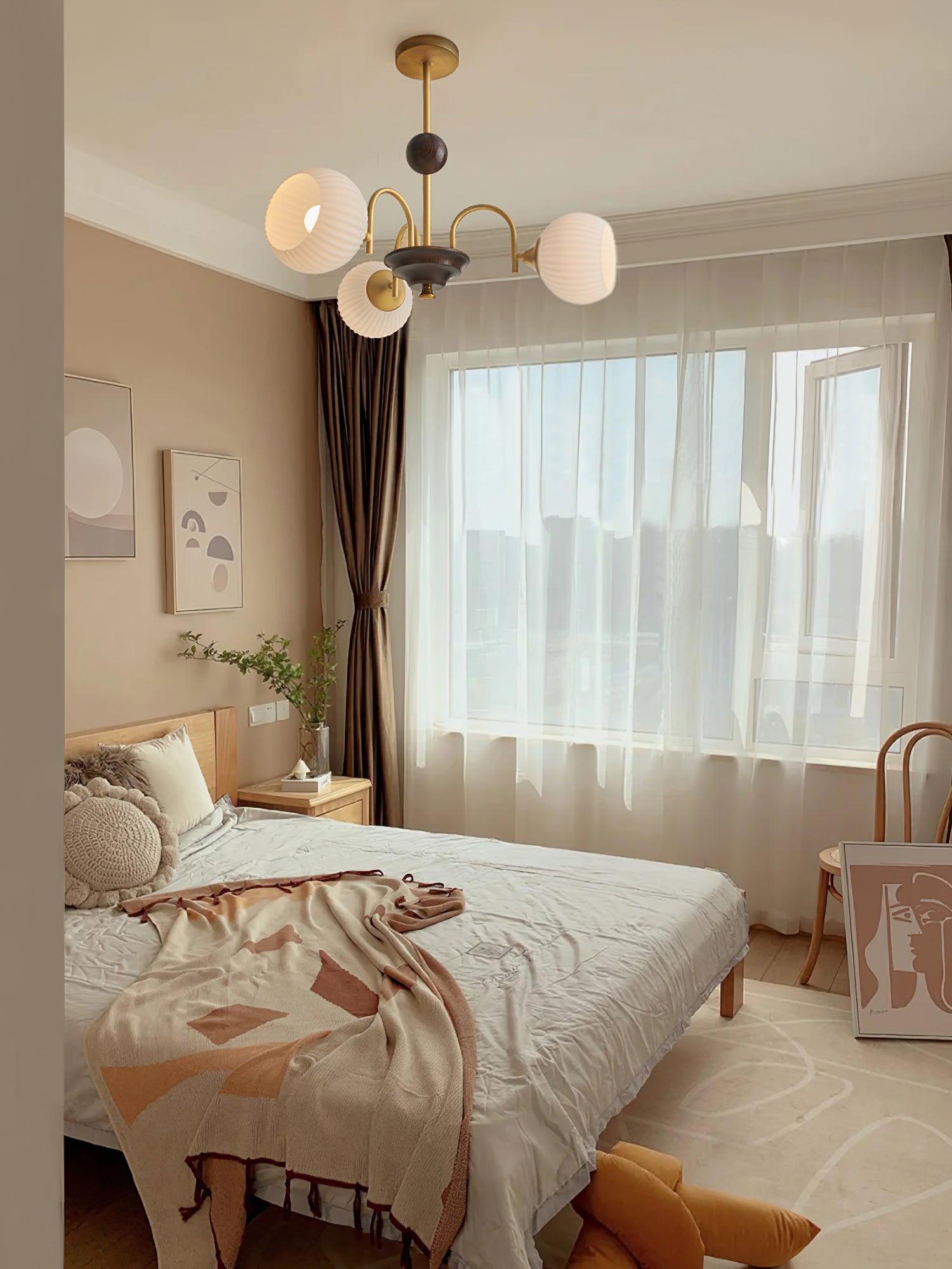 Light diffuses through rice paper shades, casting a soft, ethereal glow—delicate and calming.