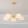 This modern striped glass bowl chandelier is the perfect way to elevate your home. Expertly crafted from iron materials. this statement piece is sure to make a striking impression. The simplistic Scandinavian look will bring an air of elegance to any dining room. living room. or bedroom. Add this chic piece to your home to bring a touch of luxury.