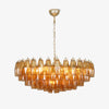Elevate your space with this chandelier featuring layered amber glass arranged in a flowing oval form It creates a warm and inviting glow suitable for living rooms dining areas or entryways Its simple structure and soft lighting effect make it a standout piece that adds atmosphere and style without being overwhelming.