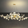View Full CollectionModern Ginkgo Leaf Chandelier with an elongated branch design, featuring golden stems adorned with delicate white leaves. Inspired by nature, this artistic pendant light creates a warm, elegant glow, making it a perfect statement piece for dining rooms, living rooms, or over long tables. Crafted with high-quality metal and exquisite detailing, it blends luxury with contemporary style, adding sophistication to any interior.