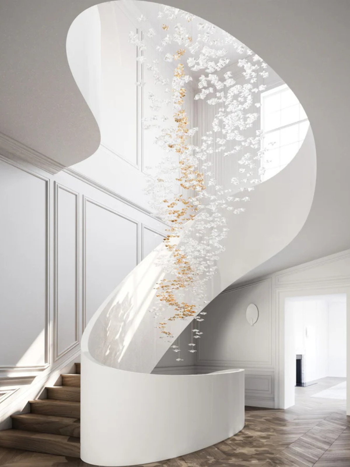 Graceful and sculptural, the Olivia collection draws inspiration from the elegant form of the ginkgo leaf. Each luxury chandelier is a work of art—crafted with meticulous detail to create a shimmering centerpiece in any room. Whether adorning a grand foyer or dining space, these statement pendant lights combine organic curves with metallic finishes for a modern yet timeless aesthetic. Elevate your interiors with ginkgo leaf chandeliers that blur the line between lighting and art.