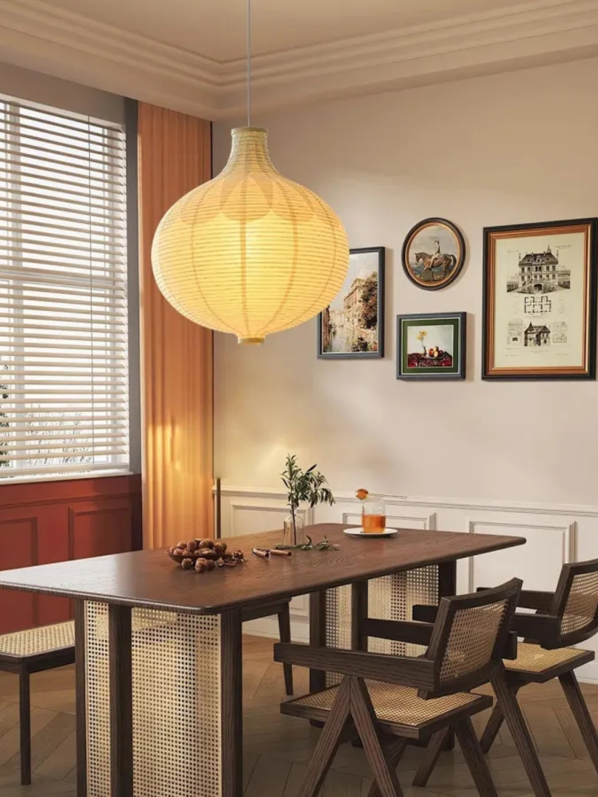 Light diffuses through rice paper shades, casting a soft, ethereal glow—delicate and calming.