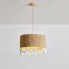 This bohemian-inspired pendant lamp features a natural fiber-wrapped drum shade with a playful beaded fringe. blending rustic charm with artistic elegance. Its warm. ambient light creates a cozy and inviting atmosphere. making it perfect for living rooms. dining areas. or bedrooms. The lamp's organic textures and handcrafted details make it a standout piece that complements bohemian. eclectic. or modern interiors.