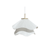 The Bloom Pendant Light features multiple layers of light white fabric with delicate pleats, creating a graceful appearance. Soft light diffuses through the layers, accentuating the brass hardware, perfect for dining rooms, living rooms, or bedrooms.