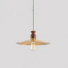 Pendant Lamp Scalloped Brass Shade Walnut Wood Vintage