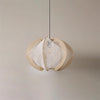 Pendant Light with Fabric Shade, Wooden Frame, and Wire Detail