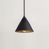 The Ritta Lava Pendant Light draws inspiration from volcanic landscapes, featuring a striking cone-shaped shade with crater-like perforations. Its textured black finish reveals a warm golden interior, casting a dramatic yet inviting glow. Perfect for dining areas, kitchen islands, or modern lofts, this pendant combines bold sculptural design with natural elegance, making it a statement piece for contemporary interiors.