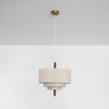 The Pendant Lamp is an organically shaped light, adding elegance with its three fabric lampshades, textile cord, wooden top, and brushed metal details. It's a functional and stylish way to illuminate your space with natural beauty.