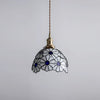 Handcrafted Pendant Light boasts vibrant floral stained glass, casting a warm glow for a cozy, artistic touch to any room.