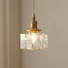 This vintage pendant light features hammered glass and brass details in a boxy shape—ideal for kitchens, bedrooms, or hallways with timeless charm and soft, warm light.