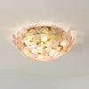 Discover the Anan Floral Ceiling Light. where artistry blooms in luminescence. This exquisite piece is a celebration of delicate craftsmanship and design elegance. featuring a wreath of glass petals in blush pink and soft gold that unfurl in a radiant display. Each petal is meticulously formed. with ridged textures that capture and reflect the light. creating a dance of brilliance and shadows across your ceiling.