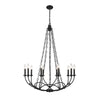 The wrought iron chandelier features a striking black frame with candle-style lights arranged in an elegant circular design. Suspended by sturdy chains, its refined silhouette blends rustic charm with timeless sophistication. Perfect for dining rooms, living areas, or grand entryways, this chandelier creates a warm, inviting atmosphere while serving as a bold statement piece.