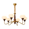 Lustra Chandelier Glass Wood Brass Modern 6-Light