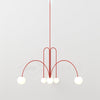 This red metal chandelier with spherical glass shades combines elegance and contemporary flair. Its arched arms and balanced form make it a striking centerpiece, perfect for dining rooms, living areas, or entryways. A bold design that elevates your space with modern sophistication and warm light.